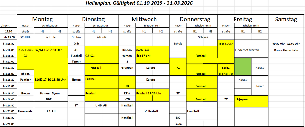 Hallenplan für die Halle am Solebad (Hasestraße) und Halle am Schulzentrum